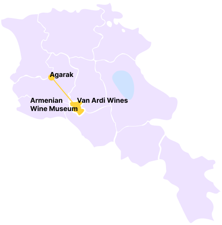 Embark on a fascinating exploration of wine history in Armenia, starting with the Agarak Archaeological Site, where ancient ruins reveal the rich history of early civilizations. Continue your journey with a visit to the Armenian Wine Museum, delving into the centuries-old tradition of winemaking in Armenia and indulge in a delightful lunch and wine tasting at the Van Ardi Winery, where you can savor exquisite local wines amidst picturesque vineyard landscapes.